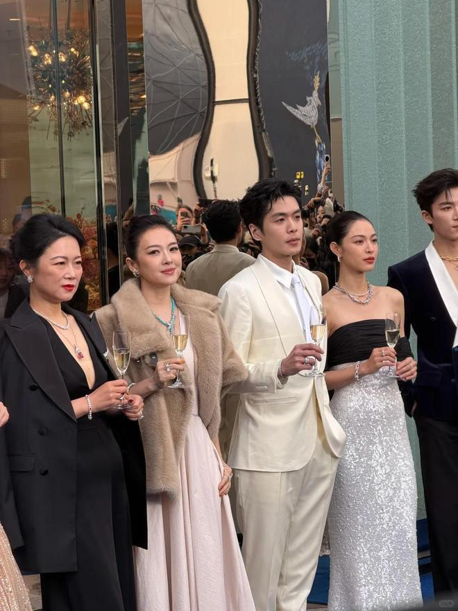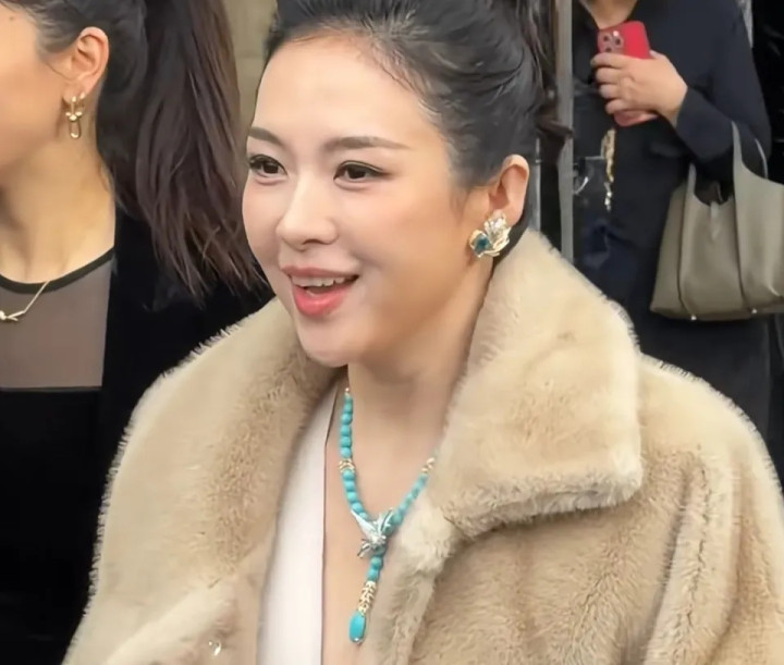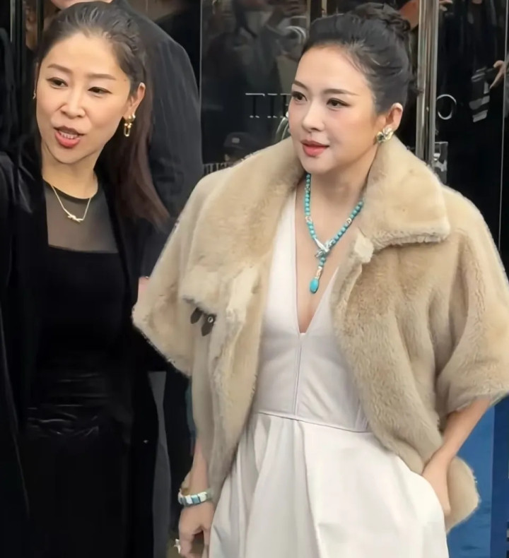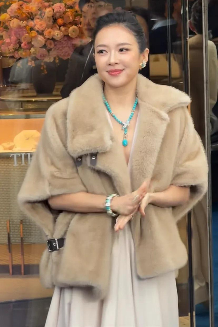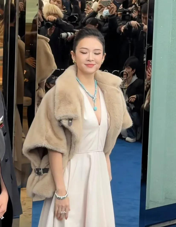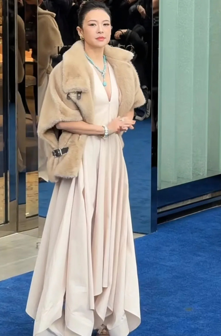 下一秒,闪光灯噼里啪啦,章子怡压轴出场,深V长裙配米色皮草,绿松石项链一晃,气场先到,东谈主后到。